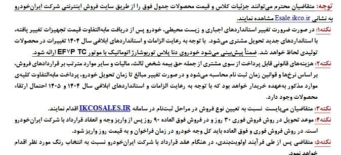 تبصره 1 -آخرین مهلت برای ثبت اطلاعات خودروهای فرسوده در سایت WWW.NNHK.IR تاریخ 1404.11.11 است و متقاضیانی که پس از این تاریخ در سایت فوق ثبت نام نمایند امکان ثبت نام در دوازدهمین دوره ثبت درخواست خرید خودرو اولویت بندی را نخواهند داشت.